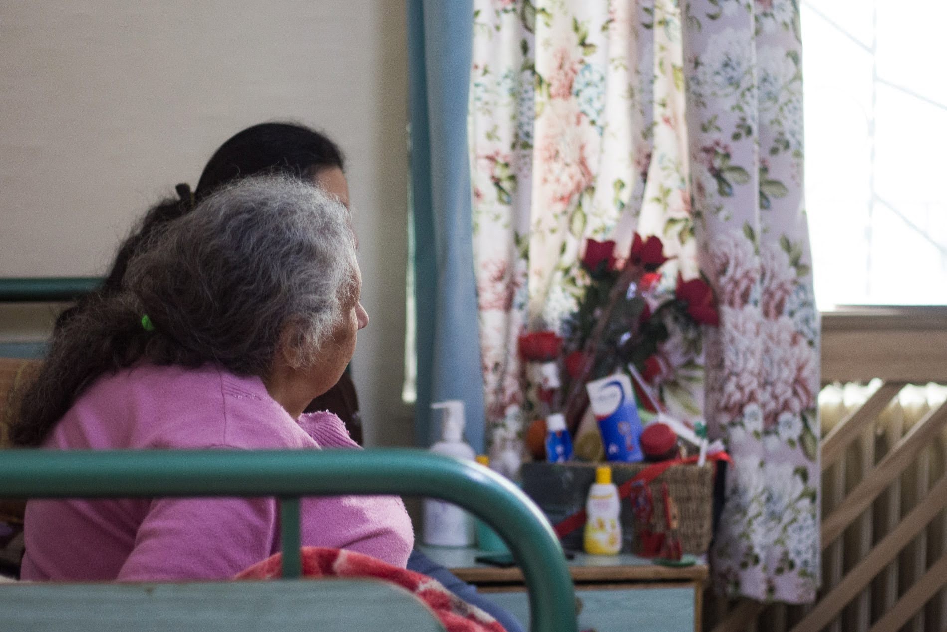 في صالة التلفاز، تجلس المُسنّة أم ماجد أمام الشاشة، وإلى جانبها شابة وسط مجموعة من المسنّات. تعاني سمر (46 سنة) من اضطراب نفسي، يؤدّي إلى تعلّقها تعلّقًا مرضيًا بوالدتها. أخفى عنها أخوتها قيامهم بإدخال والدتهم إلى دار رعاية المسنين، وبالصدفة كانت تشاهد التلفاز لتتفاجأ بوالدتها تظهر في تقرير من هذه الدار. تقول سمر: «تفاجأت إنه جايبين صورة الوالدة، فقلت لعمتي هي صورة إمّي موجودة في دار المسنين»، لتقوم بعدها بمواجهة أسرتها، وتخبرهم برغبتها في التواجد بجانب والدتها. وافق إخوتها وقاموا بالترتيبات اللازمة، وهي اليوم تفترش السرير المحاذي لوالدتها منذ ثلاثة عشر عامًا.